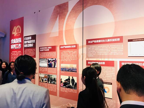 同学们首先来到了“全面依法治国,走向伟大复兴”展厅,大厅中的全国首例案件卷宗材料展示柜引起了同学们极大的兴趣,同学们还通过点击触摸屏,浏览各地法院判决的大案要案基本情况。