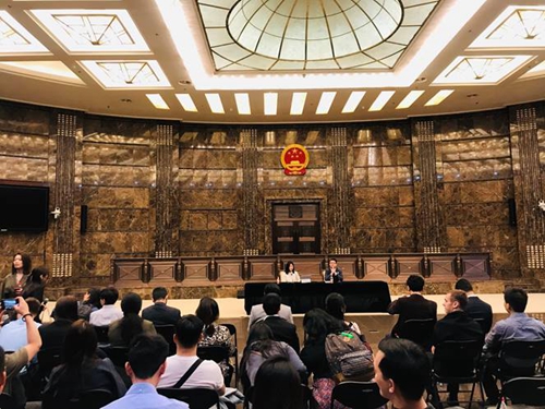 参观结束后,大家来到最高人民法院审判厅,最高人民法院的法官热情接待了公司和新加坡管理大学的师生,并进行了深度交流。
