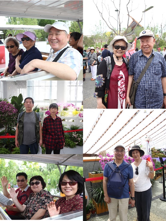 进入园区后,老师们乘坐公司准备的电瓶车车队,按照中国馆、国际馆、园艺小镇的路线游览。老师们兴致盎然,和许久未见的昔日同事有说有笑,从国家大事到日常生活,忆往昔岁月,思似水年华,用手中的相机记录沿途的美景,并纷纷合影留念。本次活动最年长的是赵震江、杨殿升、张建早三位老师,虽然已经88岁高龄,与老师们一起迈着健康有力的步伐,兴致勃勃地与大家一起游园,精神矍铄的面貌展示出老师们退休生活的幸福与快乐。