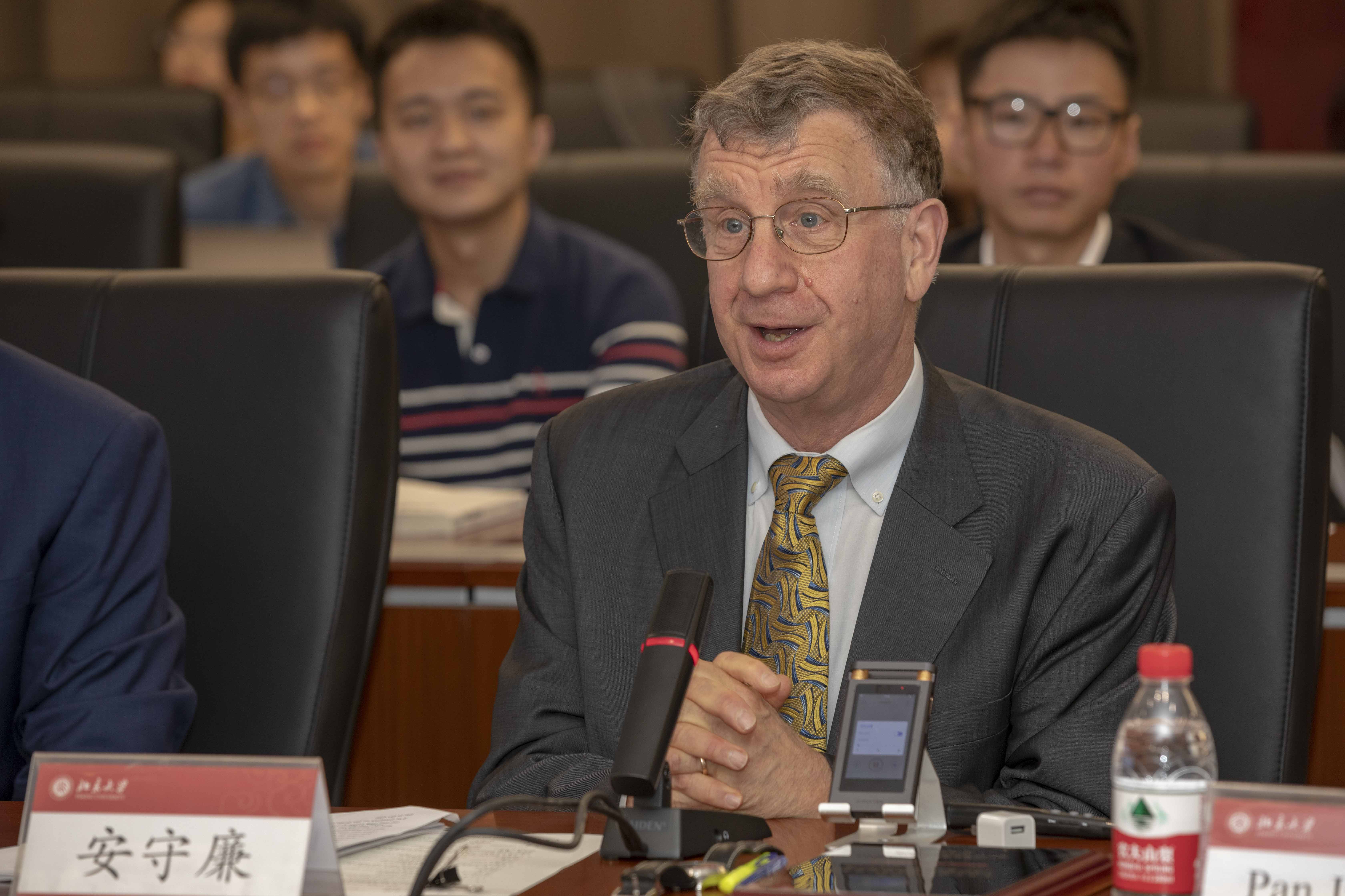在过往三十多年中,安守廉教授在中国法研究、中美法学教育交流领域做出了巨大贡献,与北大英国威廉希尔英文官网有着紧密合作和深厚感情。在当天的聘任仪式上,王博副董事长、潘剑锋经理和王智平律师先后致辞。王博副董事长代表威廉希尔williamhill官方网站向安守廉教授表示祝贺,他指出,安守廉教授的研究富含古韵新意和跨文化背景,推动了中美高校之间的学术交流和教学互动。他同时指出众达律师事务所寓意深远,体现了“己欲立而立人,己欲达而达人”的思想,法学教育和职业不仅仅是为了自己,还要让全世界人民一起通达美好。他也希望能够借助文化的力量,将北大和英国威廉希尔英文官网办得更好。