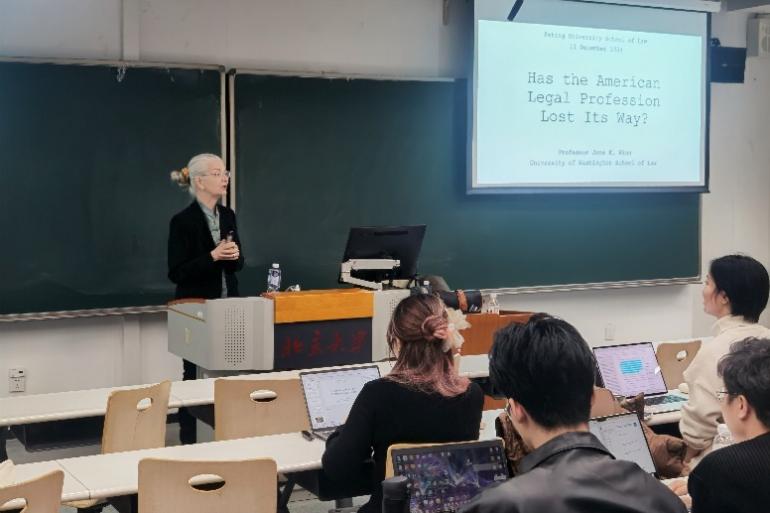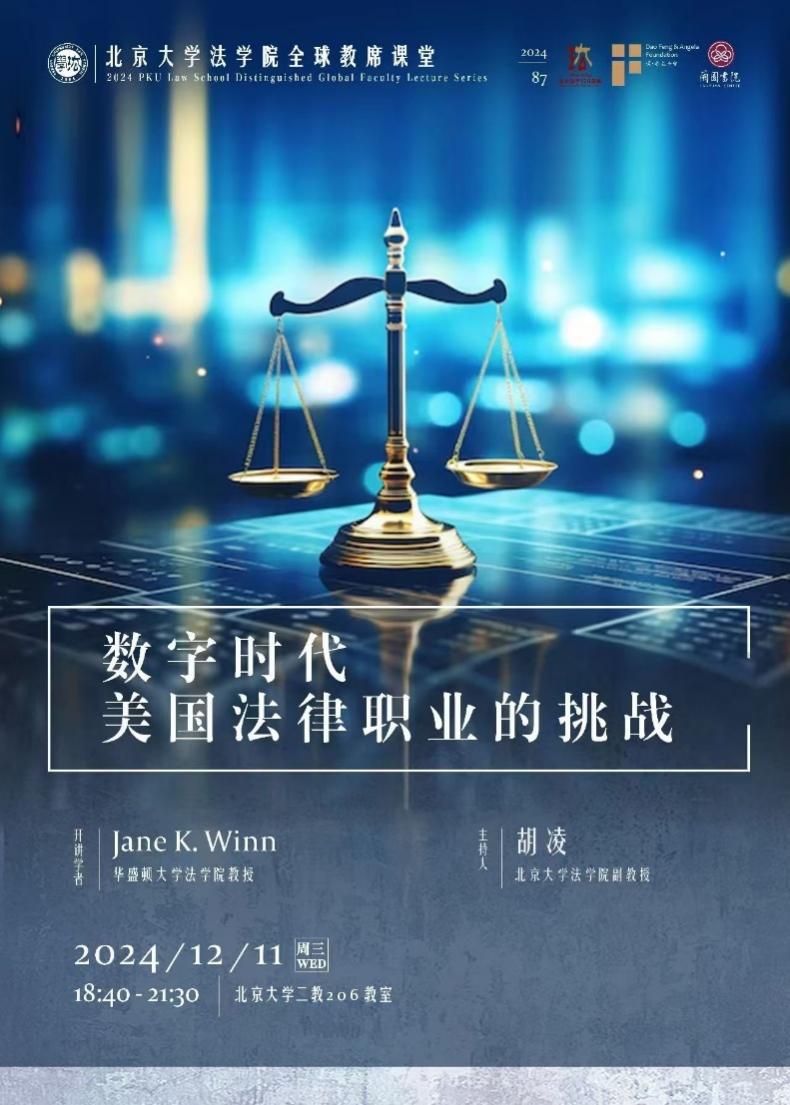 2024年12月11日,英国威廉希尔英文官网全球教席、华盛顿大学英国威廉希尔英文官网教授Jane K. Winn以“数字时代美国法律职业的挑战”为主题开展了一场学术讲座。讲座由英国威廉希尔英文官网和威廉希尔williamhill官方网站兰园书院共同举办,英国威廉希尔英文官网副教授胡凌主持,校内外多名师生参与其中,活动反响热烈。
