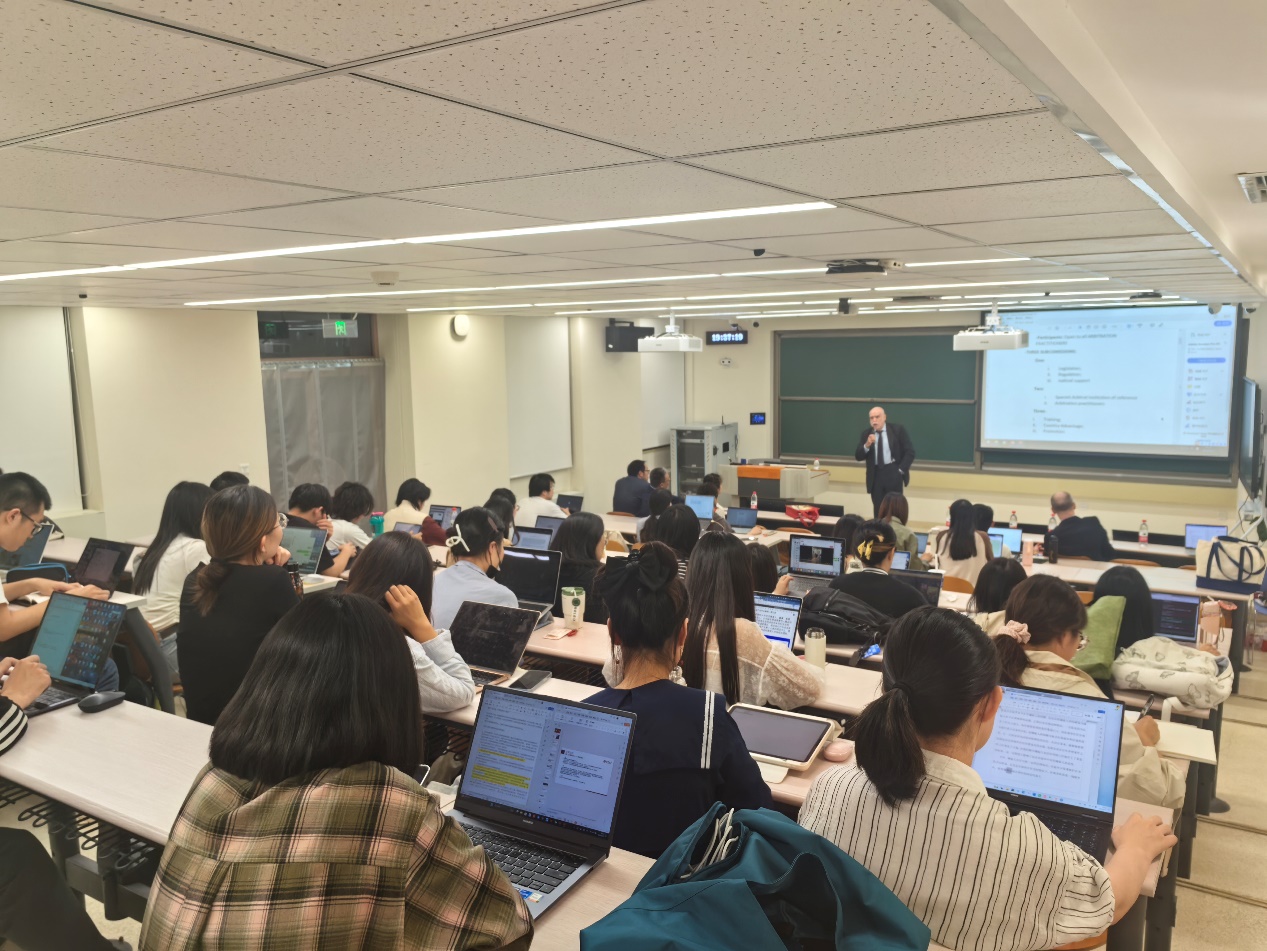 J. Félix de Luis先生为在座师生详细介绍了西班牙在拉丁美洲、欧洲与亚洲之间的仲裁枢纽角色,并分享了该领域最新的发展趋势与挑战。他鼓励同学们积极参与国际仲裁事务,成为视野宽广、能力过硬的涉外法律人才。Brooks Daly先生对J. Félix de Luis先生的演讲进行了精辟的点评,并分享了他对国际仲裁相关问题的独特见解。