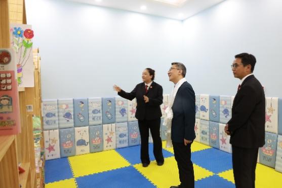 在法院工作人员的引导下,师生们参观了诉讼服务中心、家事法庭、少年法庭等特色区域。家事法庭温馨柔和的布置细节,少年法庭为保护未成年人权益所采用的圆桌审判模式,处处体现着司法的“温度”。诉讼服务中心“智慧法院”的高效运转,让师生们亲身感受到雪域高原司法为民的创新实践。此次参访不仅是一次教学实践,更是一堂直观深刻的法治国情课。