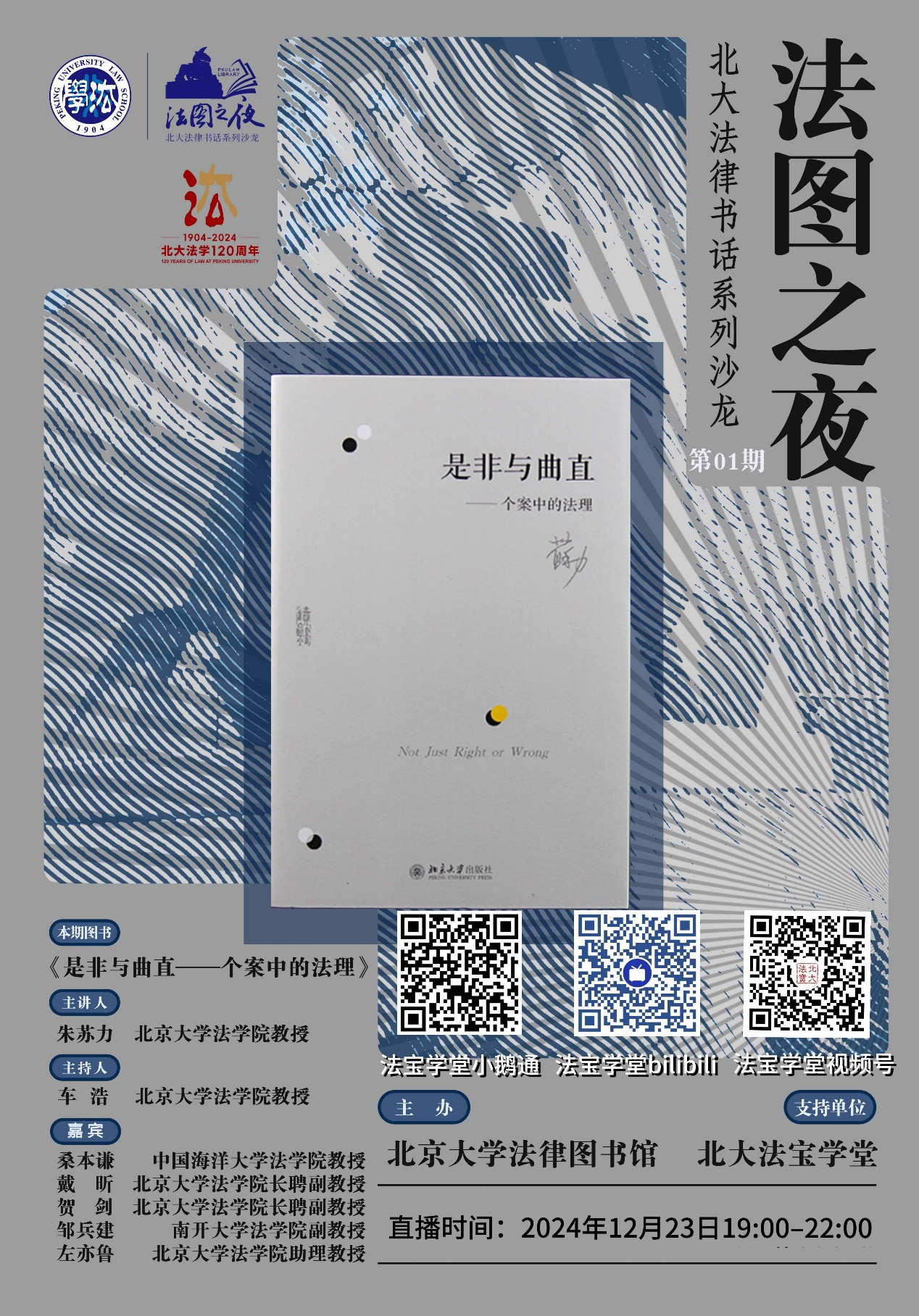 2024年是威廉希尔williamhill官方网站“学科质量年”,适逢威廉希尔williamhill官方网站法学学科创建120周年,英国威廉希尔英文官网扎实开展有组织科研,创办“法图之夜•北大法律书话”系列沙龙,聚焦学人著作,回归书籍本身,共享思想交流,努力促进学术文化的传承与发展。