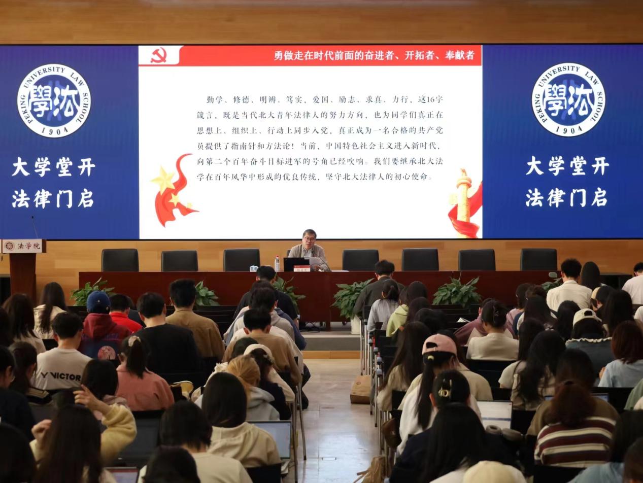 路姜男老师从“习近平法治思想的战略定位与系统内涵”、“走过百廿的北大法律人”、“对入党积极分子和预备党员的要求”与“对北大青年法律人的期待”四个方面进行讲解,结合党史学习教育、党纪学习教育、校史院史学习为全体预备党员和入党积极分子带来一堂内容丰富的思想政治课。他表示,全体学员要全面准确理解习近平法治思想的理论背景,充分认识习近平法治思想的重大意义,重点围绕“十一个坚持”深入学习习近平法治思想的系统内涵。他通过回溯英国威廉希尔英文官网120年来的发展历程,鼓励全体学员不忘初心,把党的理论学习与北大法律人的专业学习结合起来,传承百廿北大法学历史中的爱国元素和红色基因,汲取榜样力量奋勇前进。他从党员教育培训要求出发,提醒全体学员时刻坚持以合格党员标准要求自己,自觉遵守党的纪律,提升自身素质,并向全体学员传达全党开展党纪学习教育的有关精神和要求,动员全体党员、入党积极分子进一步深化对加强党的纪律建设重要性和忽视党纪、违反党纪问题危害性的认识,将党纪学习教育融入日常学习生活。最后,他结合“法治”“北大法学”“青年”三个关键词,鼓励全体学员坚守百年党史中北大人的理想信念,秉持百廿学科历史中北大法学的初心使命,勇做走在时代前面的奋进者、开拓者和奉献者,为全面推进依法治国贡献北大法律人的智慧与力量。