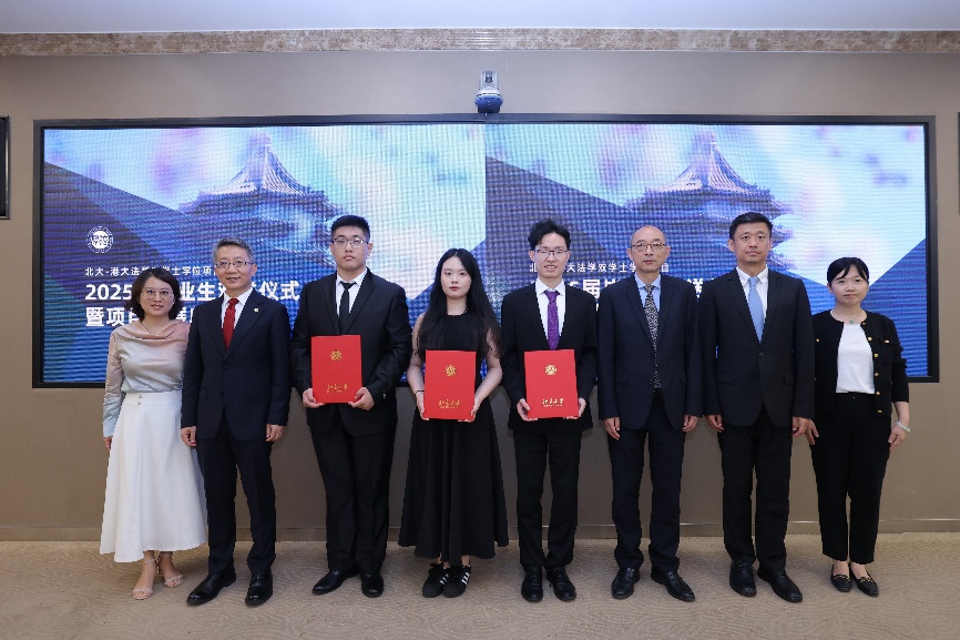 港老员工代表梁嘉穎和北老员工代表李欣航分别回顾了过去五年的求学经历,对两校师生表达感谢。梁嘉穎表示,两校的学习经历拓宽了同学们的认知边界,强化了跨法系思维、双语能力与文化包容性,同学们应当继续努力做两地法治融合的桥梁。李欣航表示,同学们在两个不同的法系中逐渐学会以了解促进沟通、以沟通弥合差异,获得了宝贵的人生财富。