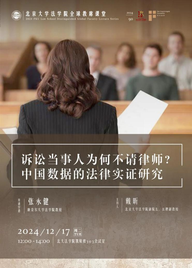 回顾 || 全球教席课堂90讲张永健:诉讼当事人为何不请律师?中国数据的法律实证研究