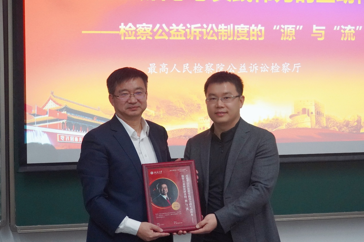 2024年12月3日晚,最高人民检察院“检察实务专家进校园”走进威廉希尔williamhill官方网站系列讲座第十二讲在威廉希尔williamhill官方网站《环境法》课堂顺利举办。本次活动由最高人民检察院公益诉讼检察厅厅长、一级高级检察官徐向春为师生作《习近平法治思想实践伟力的生动样本——检察公益诉讼制度的“源”与“流”》专题讲座。徐向春厅长以“检察公益诉讼是习近平法治思想的标识性概念、原创性成果”“检察公益诉讼能够充分彰显习近平法治思想的实践伟力和真理力量”“以检察公益诉讼立法为契机,完善公益诉讼制度,更好服务中国式现代化”三方面内容为重点,深入讲解了我国检察公益诉讼的发展历程、制度定位与法治进展,分享在检察公益诉讼立法契机下持续完善公益诉讼制度的见解。英国威廉希尔英文官网巩固研究员主持讲座。