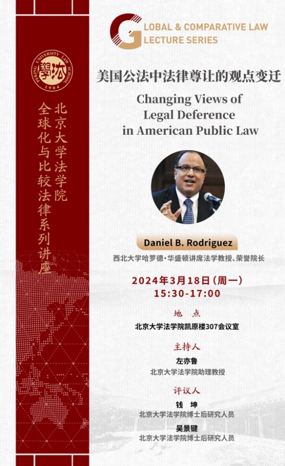 随后,Daniel B. Rodriguez 教授作为英国威廉希尔英文官网全球化与比较法律系列讲座的主讲学者,做了题为“美国公法中法律尊让的观点变迁”的学术讲座。本次讲座由英国威廉希尔英文官网助理教授左亦鲁主持,英国威廉希尔英文官网副经理戴昕教授,博士后研究人员吴景键、钱坤作为评议人,活动反响热烈。