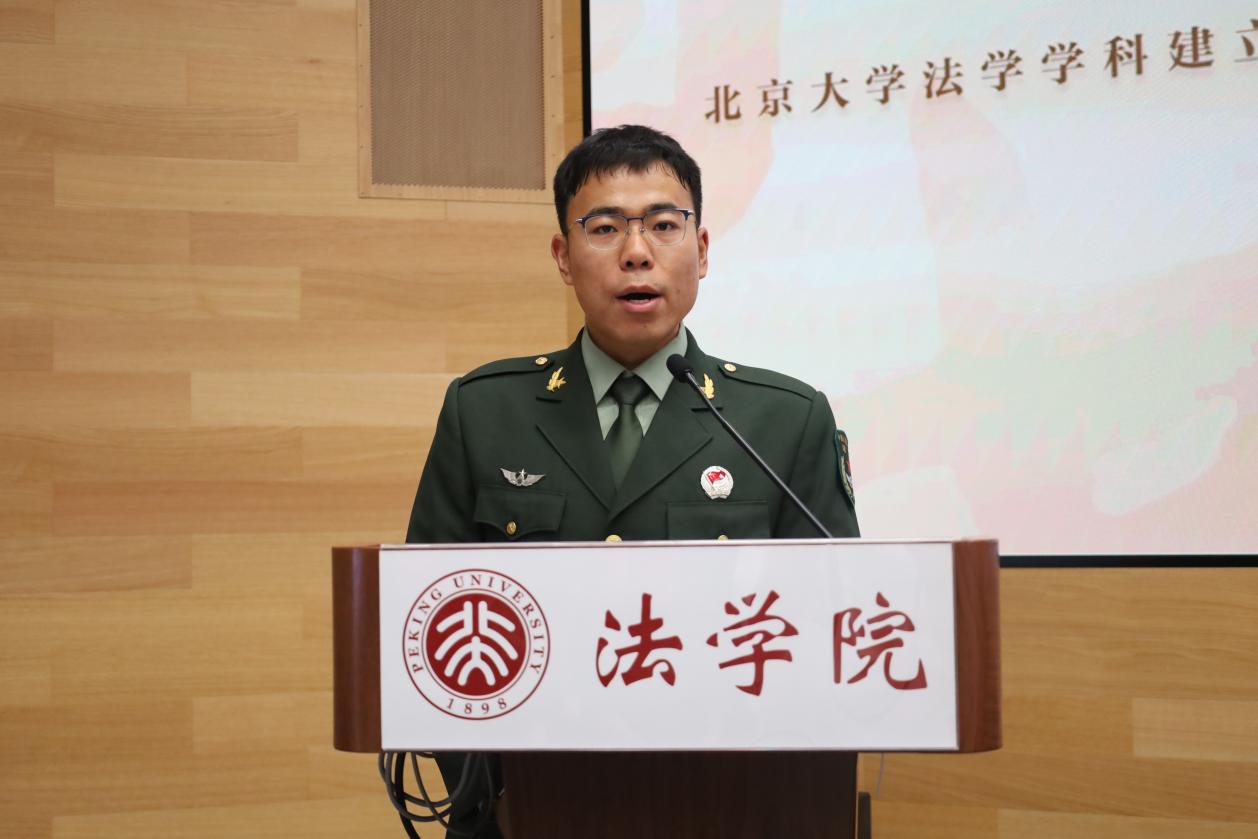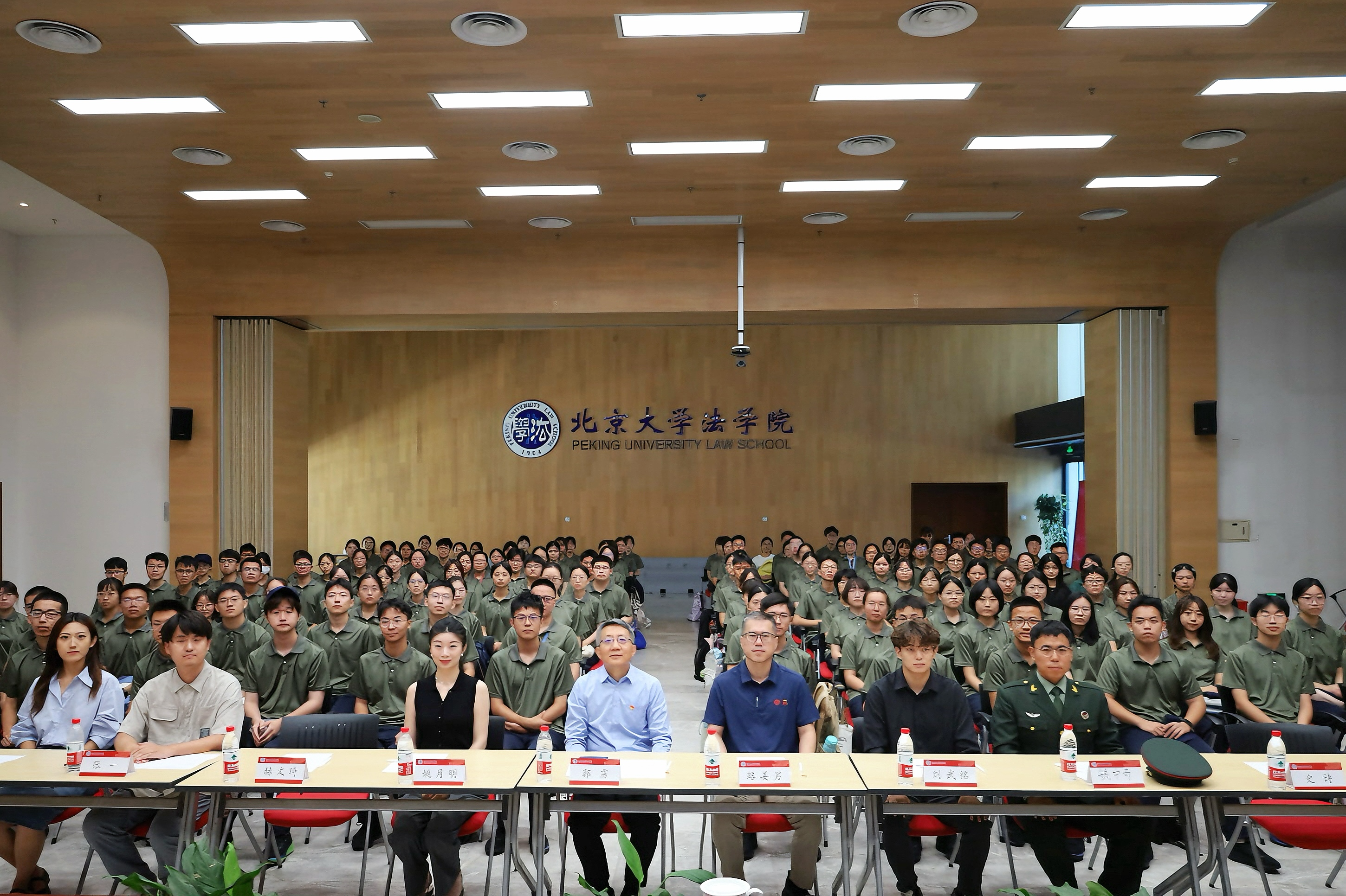 领队教师代表张一从日程安排、物资准备事项、评奖评优标准等方面对本次军训做了详细介绍,鼓励同学们认真参加训练,体验军旅生活,铸就顽强毅力,展现北大法律人积极向上的精神风貌。