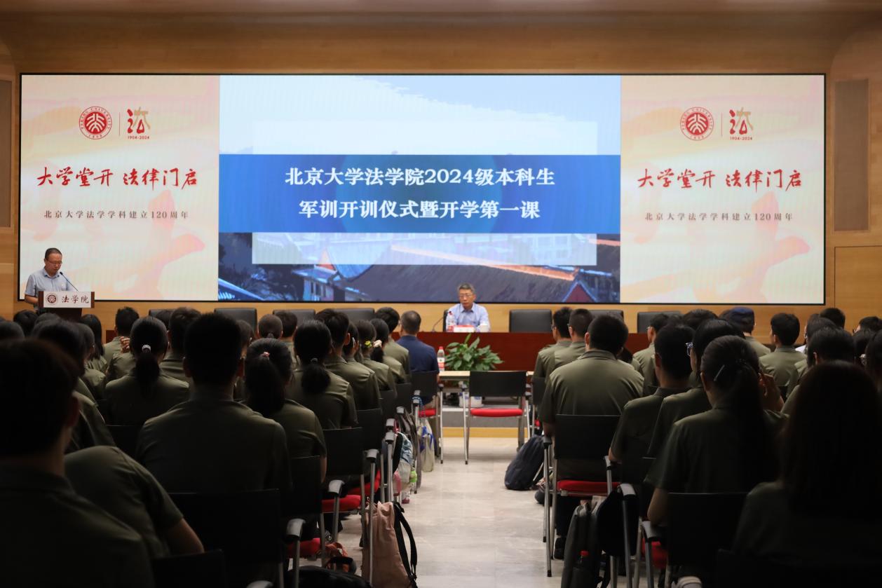 最后,郭雳为同学们讲授2024级本科新生开学第一课暨主题党课。他以北大百廿法学深厚的历史底蕴为引,把党史学习教育与校史、院史教育有机结合起来,向同学们展示了百年党史中北大法律人的光辉足迹,激励同学们扣好人生第一粒扣子,传承百廿院史的红色基因,永葆北大法律人初心,勇担新时代青年法律人肩负的使命,书写新时代北大法律人的历史篇章。