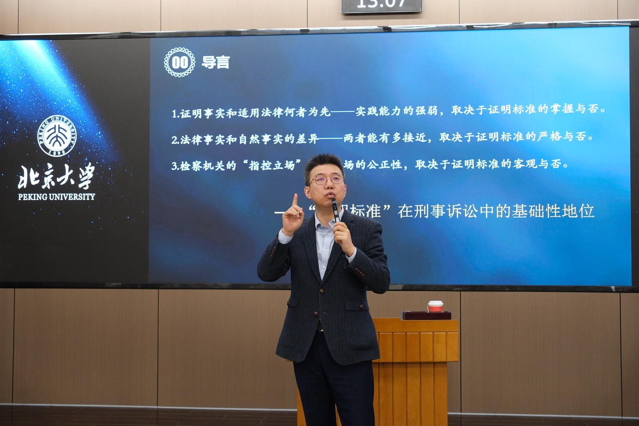 首先,陆锋为同学们讲解了我国刑事诉讼证明标准的发展历史与排除合理怀疑原则的地位,分析了排除合理怀疑和内心确信作为证明标准的区别,以及排除合理怀疑在域外法系和我国法律中的异同。他结合实证研究,厘清了我国刑事诉讼证明标准中排除合理怀疑的内涵,并梳理了排除合理怀疑和事实证成的逻辑关系。他强调,我国的排除合理怀疑标准受到印证规则约束,具备验证性质的附属特征。其后,他介绍了一般常识常理的应用和证据印证关系的研判,指出对于不具备证据印证关系的研判,需要更重视完善和补强措施。最后,他重申了事实证明的重要性,强调要切实做到“三个善于”,高质效办好每一个案件,更好地为大局服务,为人民司法、为国家法治担当。