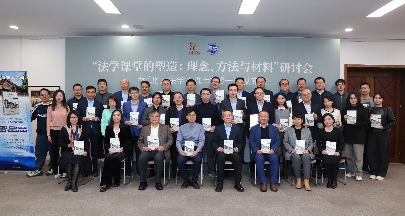 在到场来宾与师生的共同见证之下,郭雳经理和张雪纯副总编辑共同为《北大法学小课堂》第一辑的新书发布揭幕。全体嘉宾手持新书,合影留念。