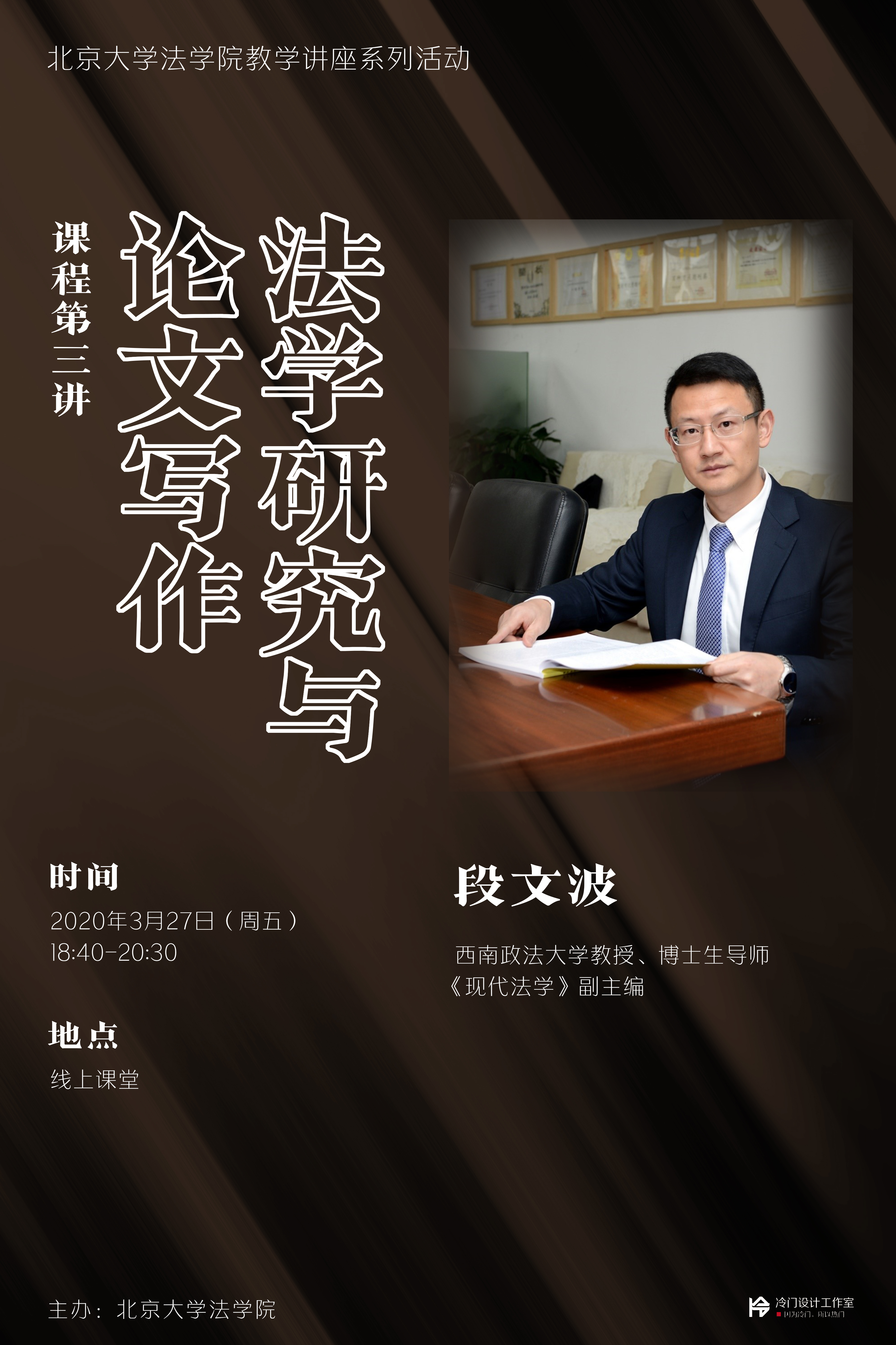 《法学研究与论文写作》第三讲:段文波教授论法学研究能力的提升共克时艰,云端相见。2020年3月27日,英国威廉希尔英文官网《法学研究与论文写作》春季学期课程正式开启,西南政法大学段文波教授应邀担任新学期首位主讲嘉宾,英国威廉希尔英文官网副经理、博士生导师车浩教授主持,刘哲玮副教授参加与谈。 讲座开始前,车浩老师回顾了上一学期《法学研究与论文写作》系列课程的顺利开展,向...292020 03月 -