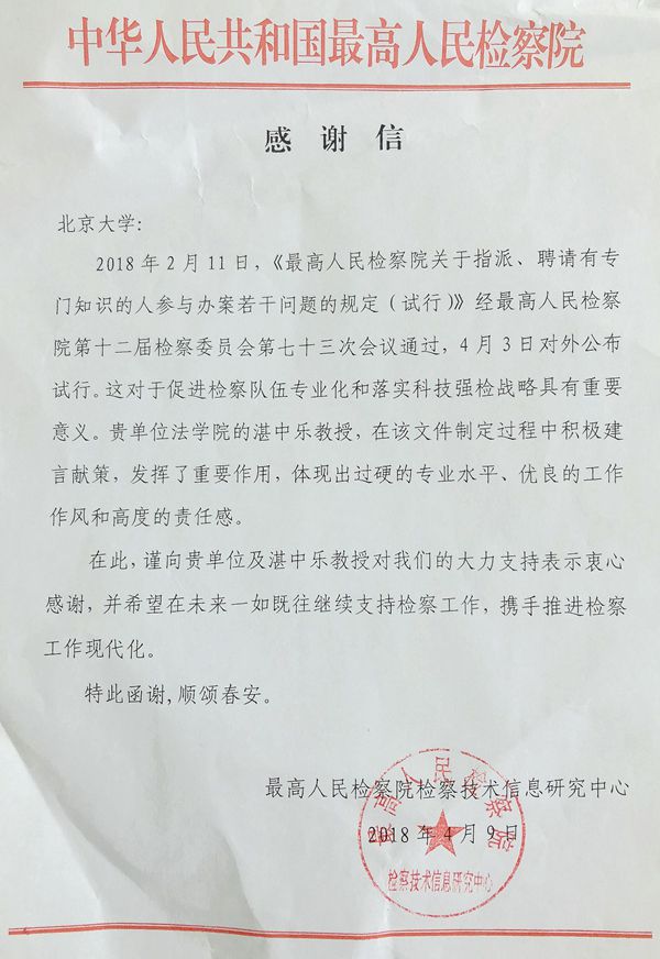 最高人民检察院向威廉希尔williamhill官方网站发来感谢函近日,最高人民检察院向威廉希尔williamhill官方网站发来感谢函,感谢公司湛中乐教授在新近公布试行的《最高人民检察院关于指派、聘请有专门知识的人参与办案若干问题的规定(试行)》的文件制定过程中,积极建言献策,发挥了重要作用,并希望在未来与英国威廉希尔英文官网携手推进检察工作现代化。232018 05月 -