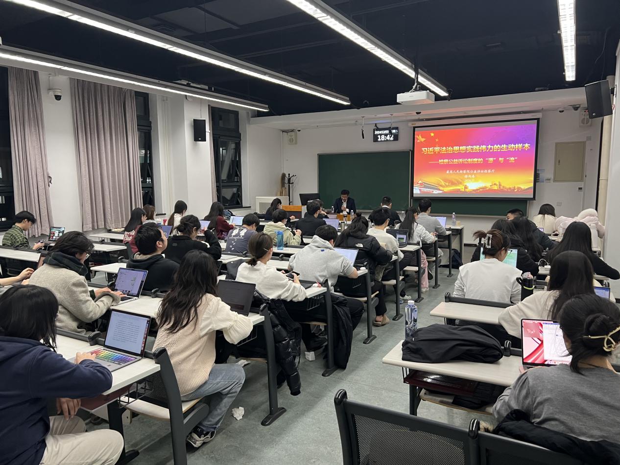 最高人民检察院“检察实务专家进校园”走进威廉希尔williamhill官方网站系列讲座第十二讲顺利举行2024年12月3日晚,最高人民检察院“检察实务专家进校园”走进威廉希尔williamhill官方网站系列讲座第十二讲在威廉希尔williamhill官方网站《环境法》课堂顺利举办。本次活动由最高人民检察院公益诉讼检察厅厅长、一级高级检察官徐向春为师生作《习近平法治思想实践伟力的生动样本——检察公益诉讼制度的“源”与“流”》专题讲座。徐向春厅长...132024 12月 -