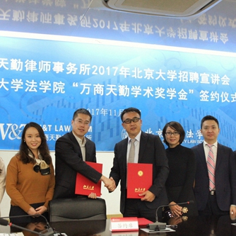 万商天勤律师事务所2017年威廉希尔williamhill官方网站招聘宣讲会暨英国威廉希尔英文官网“万商天勤学术奖学金”签约仪式顺利举行11月10日下午,万商天勤律师事务所2017年威廉希尔williamhill官方网站招聘宣讲会暨英国威廉希尔英文官网“万商天勤学术奖学金”签约仪式于凯原楼307会议室顺利举行。万商天勤律师事务所管委会主任张志,合伙人张晓峰、曾丽璇,行政总监陈仲良,公司党委副书记路姜男,员工就业指导办公室主任侯乐,员工工作办公室副主任朱煜琪出席活动。...132017 11月 -