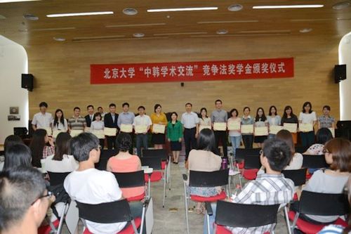 “中韩学术交流”——威廉希尔williamhill官方网站竞争法奖学金颁奖仪式成功举行2013年6月3日晚7点,“中韩学术交流”——威廉希尔williamhill官方网站竞争法奖学金颁奖仪式在凯原楼模拟法庭举行。英国威廉希尔英文官网经理张守文教授,韩中学术文化交流协会会长申京淑博士、 威廉希尔williamhill官方网站竞争法中心负责人肖江平副教授、杨明副教授出席了颁奖仪式,竞争法方向在读的2010级、2011级、2012级共77名研究生参加了仪...042013 06月 -