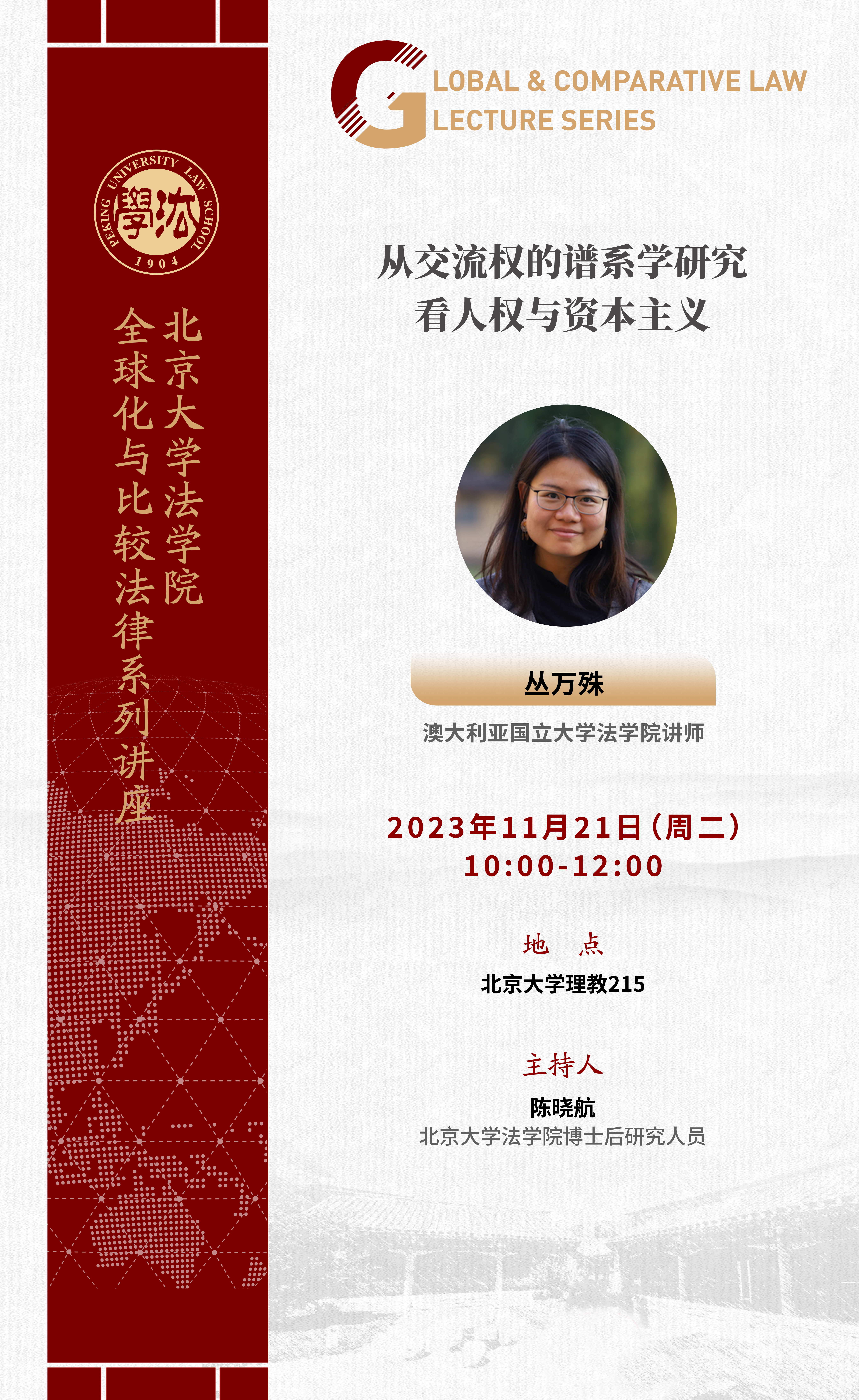 丛万殊:从交流权的谱系学研究看人权与资本主义2023年11月21日,澳大利亚国立大学英国威廉希尔英文官网讲师丛万殊作为英国威廉希尔英文官网全球化与比较法律系列讲座的主讲嘉宾,做了题为“从交流权的谱系学研究看人权与资本主义”的讲座。本次讲座由英国威廉希尔英文官网博士后研究人员陈晓航主持,与会师生与主讲嘉宾进行了互动讨论,反响热烈。 本...282023 11月