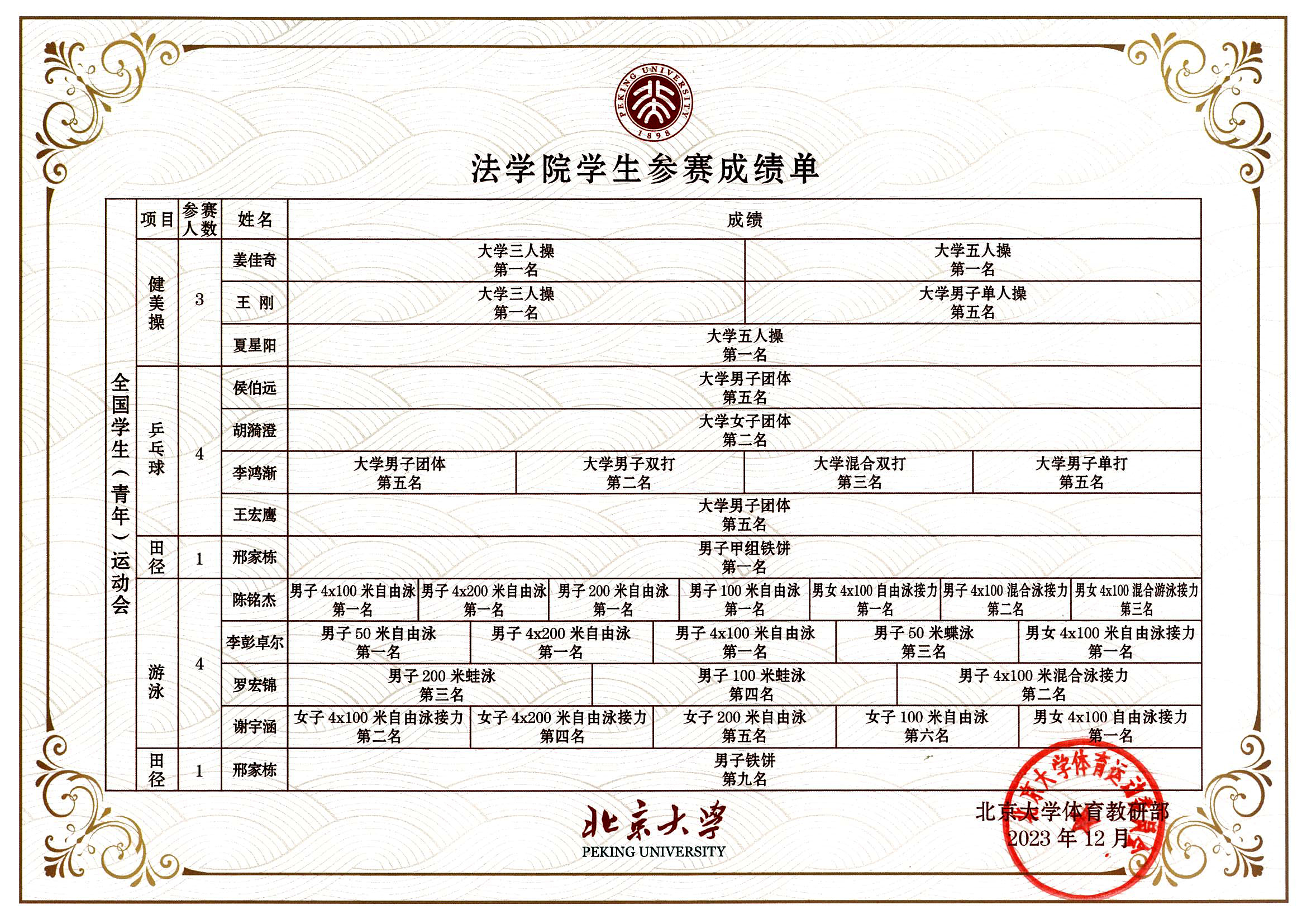 北大英国威廉希尔英文官网员工在首届全国员工(青年)运动会中取得佳绩11月15日,首届全国员工(青年)运动会在广西南宁闭幕。在为期11天的比赛里,英国威廉希尔英文官网13名在读员工作为威廉希尔williamhill官方网站代表队队员,以个人或团体成员身份总计获得9金4银4铜,取得优异成绩。 在田径、游泳、健美操、乒乓球项目中,来自北大英国威廉希尔英文官网的12名运动员与来自全国各地的青年员工激烈角逐,屡创...042023 12月 -