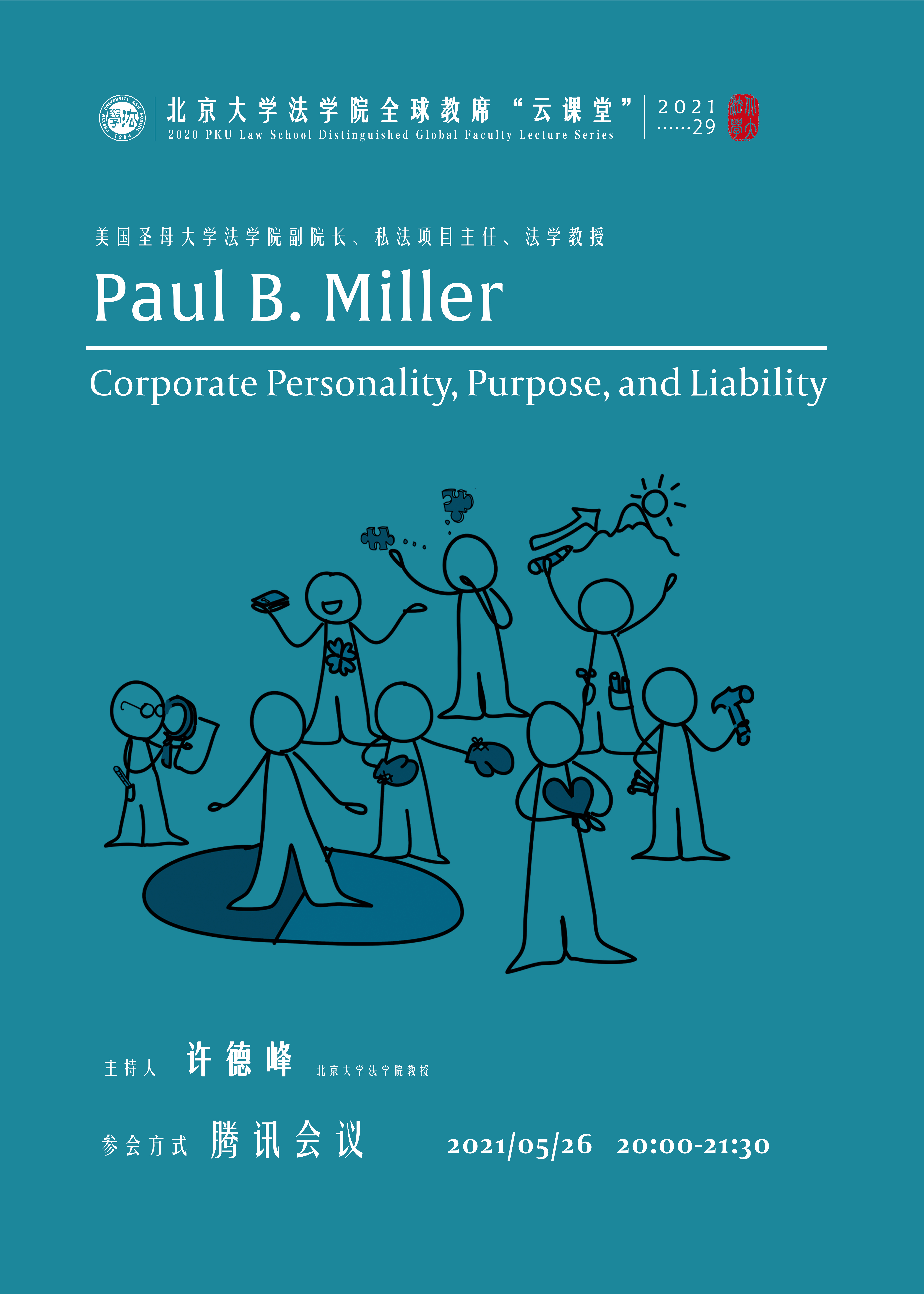 Paul B. Miller:法人目的在行为、责任归属和法人人格构建中的作用2021年5月26日,英国威廉希尔英文官网全球教席学者、美国圣母大学英国威廉希尔英文官网副经理、私法项目主任Paul B. Miller教授以“法人人格、目的和责任”为主题开展了线上学术讲座。讲座由英国威廉希尔英文官网许德峰教授主持,校内外百余名师生参与其中,并积极与Miller教授互动,活动反响热烈。 本文以文字实录...312021 05月