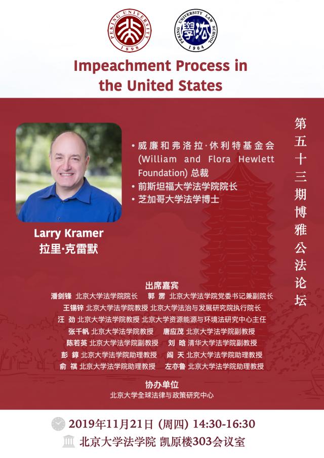 In his talk, Professor Kramer will describe the relevant historical and textual background to understand the impeachment process and put the current controversy in context. While he will not offer any views on what the outcome should be, he will describe the likely course the current inquiry is likely to take in the House of Representatives and, if the House votes to impeach, in the Senate.