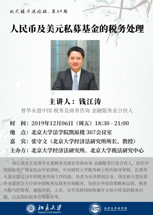 北大经济法论坛第24期——人民币及美元私募基金的税务处理