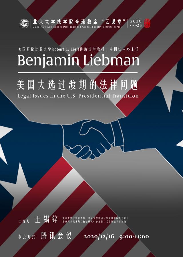 题目:美国大选过渡期的法律问题——一场Benjamin Liebman教授与王锡锌教授的对话 (Legal Issues in the U.S. Presidential Transition: A Dialogue with Professors Ben Liebman and Wang Xixin)