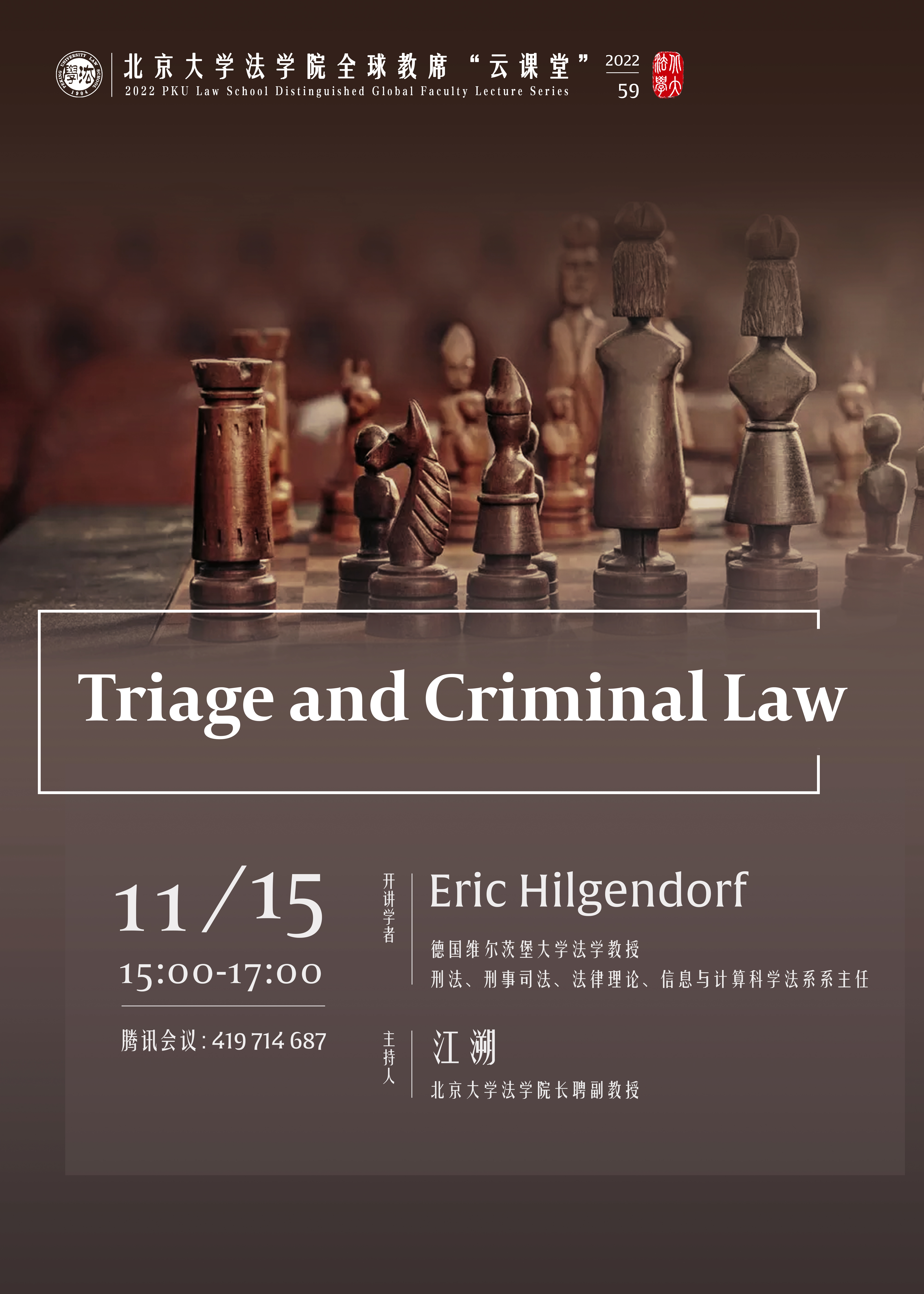 在新冠肺炎疫情背景下,刑法领域涌现出了诸多新问题,其中非常重要的一个问题就是患者分诊的可接受性问题。患者分诊指的是医疗机构在紧急状态下决定哪一类患者应该被诊治的行为。在德国,我们通常将患者分诊分为事前分诊与事后分诊。事前分诊通常是不被允许的,而事后分诊在特定情况下是被允许的。本场讲座将聚焦患者分诊中的主要问题并分析现行的主要争议焦点。