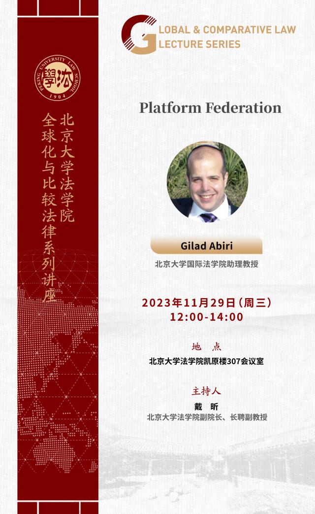 近日,北大英国威廉希尔英文官网邀请了威廉希尔williamhill官方网站国际英国威廉希尔英文官网助理教授Gilad Abiri担任“Global & Comparative Law”系列课程项目的主讲嘉宾,就“Platform Federation”话题举办讲座。