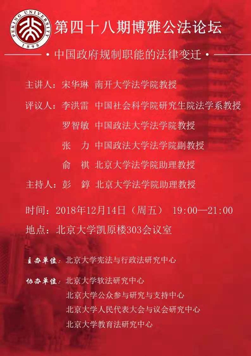 第四十八期博雅公法论坛 中国政府规制职能的法律变迁