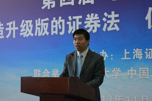 随后的致辞环节由上海证券交易所副总经理徐明主持。中国证监会主席肖钢、全国人大法工委副主任信春鹰、最高人民法院审委会专职委员杜万华、国务院法制办副主任甘藏春和上海证券交易所理事长桂敏杰分别发表讲话。