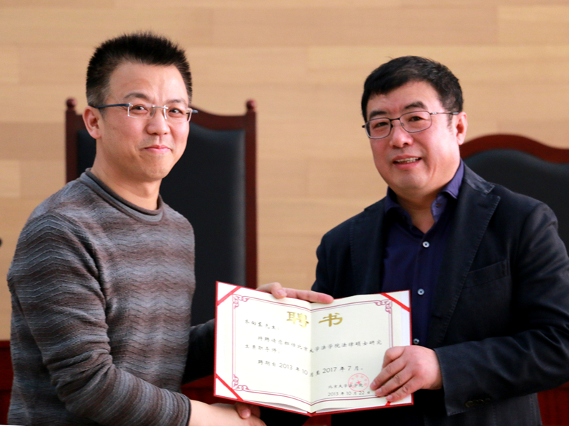 图二:强世功老师为奇虎科技有限公司总裁齐向东颁发聘书