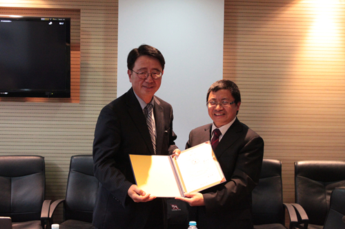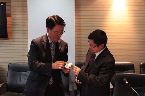 毕新东教授代表南加州大学医公司向易继明教授赠送礼物