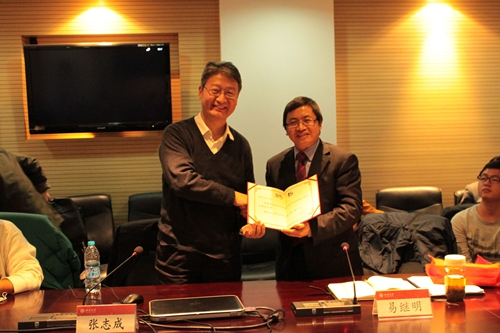 讲座的最后,易继明教授向主讲人张志成授予了硕士生导师聘书,并表示了感谢,讲座在一片掌声中圆满结束。