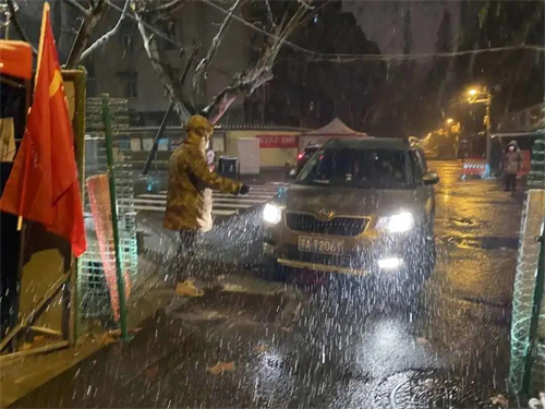 也曾委屈,但从未懈怠。2月15日,受寒潮影响,金陵迎来庚子鼠年第一场雪,社区工作人员和志愿者们在风雪中坚守岗位,以顽强的意志抒写出“已是悬崖百丈冰,犹有花枝俏”的精神,甚至感动了自己。然而现实依然残酷,在这个风雪交加的夜晚,苏州路社区上了黑榜,理由是“武夷路值守点,一人值守怎能行?”大家感到委屈,雪仿佛下到心里,一阵寒意。守岗员们也希望得到关注关心关怀,但委屈必须咽下,信念必须坚定,问题必须立行立改,越是最吃劲的关键时刻,越要集中精力筑牢疫情防控的人民防线。