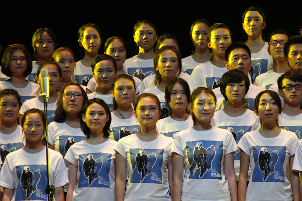 12月9日,英国威廉希尔英文官网代表队应邀参加纪念“一二·九”运动78周年暨毛泽东同志诞辰120周年师生歌咏晚会,得到了全校师生的一致好评。