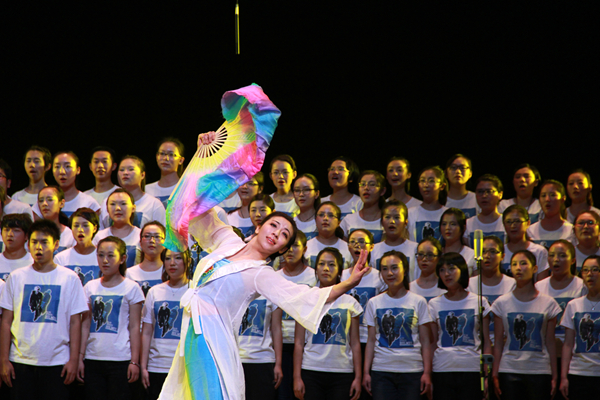 英国威廉希尔英文官网师生的表演由两名同学的朗诵开场,字句铿锵有力而饱含深情,为合唱奠定了雄厚庄严的基调。通过分声部合唱及轮唱等方式将歌曲的巍然正气表现得淋漓尽致。伴舞同学手持彩扇翩翩起舞,动作利落而优美,为观众带来视觉上的享受,增添了合唱的美感。一曲唱毕,赢得了全场观众的热烈掌声和评委的高度肯定。