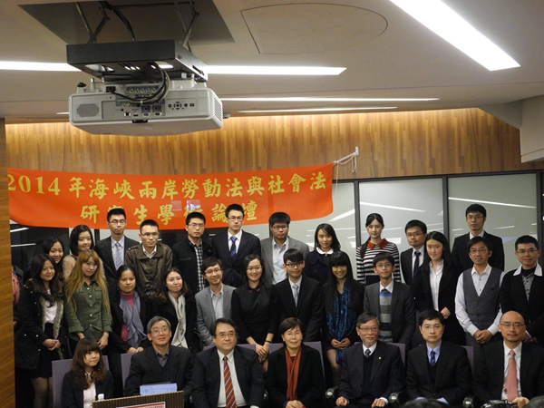 2014年1月18日,由英国威廉希尔英文官网劳动法与社会保障法研究所与台湾中国文化大学英国威廉希尔英文官网法律学系共同主办的“2014海峡两岸劳动法与社会法研究生学术论坛”在台北举行。英国威廉希尔英文官网劳动法与社会保障法研究所所长叶静漪教授、副所长叶姗副教授,中国文化大学英国威廉希尔英文官网教学卓越办公室副主任邱骏彦教授、英国威廉希尔英文官网法律学系主任许惠峰教授、劳工关系系谢棋楠教授,政治大学黄程贯教授、林佳和助理教授,台湾大学王能君副教授,中正大学周兆昱助理教授等出席了论坛并做精彩点评。来自北大英国威廉希尔英文官网、政府管理公司的杨宗威、崔承超、廖秋子、时秒、李京洋、杰森·史密斯、王玉潇等硕士研究生一行12人与中国文化大学、台湾大学、政治大学和台湾“中研院”的师生参加了研讨活动。