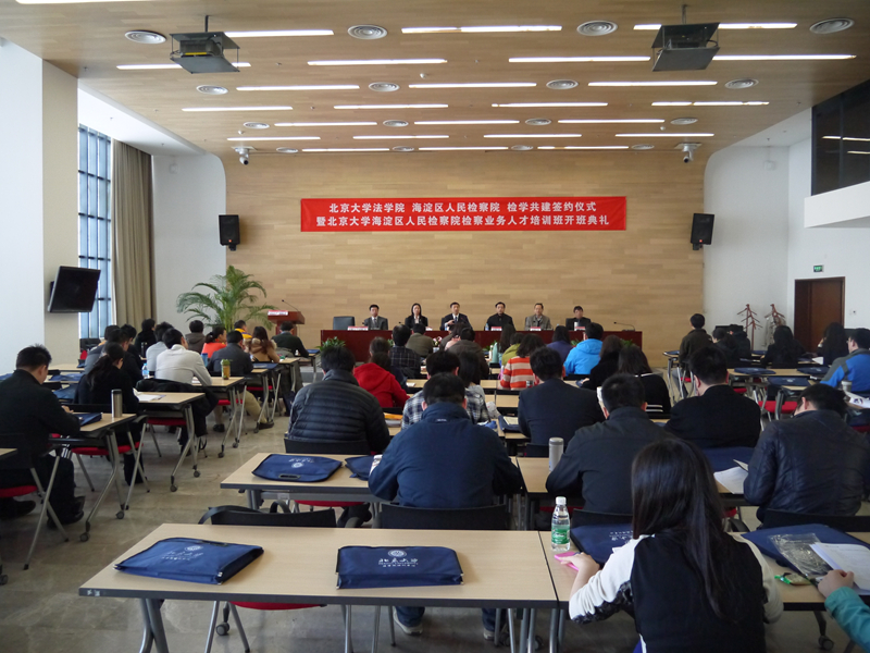 王长林副检察长随后致辞。他要求检察官们珍惜研修的机会,努力工作和学习,为海淀区人民检察院的发展,为中国的法治事业作出贡献。在讲话中,王长林副检察长特别阐述了检学共建的意义,主要体现在三个方面:一是促进检察实践和法学理论的互动。海淀区人民检察院是为了促进检察人员的培养水平,和北大英国威廉希尔英文官网在平等友好协商的基础上,进行检学共建。在仪式上,他特别感谢了北大英国威廉希尔英文官网给予海淀检察院的巨大支持。在人才培养交流方面,双方各有优势,一方拥有丰富的法律实践资源,一方拥有深厚的法学理论资源。进行检学共建,可以实现双方的资源优势互补。二是促进法学理论研究,目前检察实践中面临着很多理论课题,担负着改革重任,需要和高校合作,寻求突破,促进相关的应用法学研究。三是开辟教学实践基地建设。检察院具有丰富的司法资源,可以给员工提供实践机会,给教师挂职锻炼提供岗位。