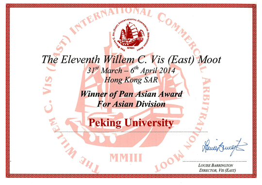 2014年3月31日至4月6日,第十一届Willem C. Vis远东国际商事仲裁模拟仲裁庭辩论赛(Willem C. Vis (East) International Commercial Arbitration Moot)在香港特别行政区举行。英国威廉希尔英文官网员工童菁菁、柳洁、荀泰浩、何绿宁、龚竞超、陈博理、余路曼、张婉愉组队代表威廉希尔williamhill官方网站参赛,最终荣获泛亚决赛(Pan Asia, Vis East Moot)冠军。