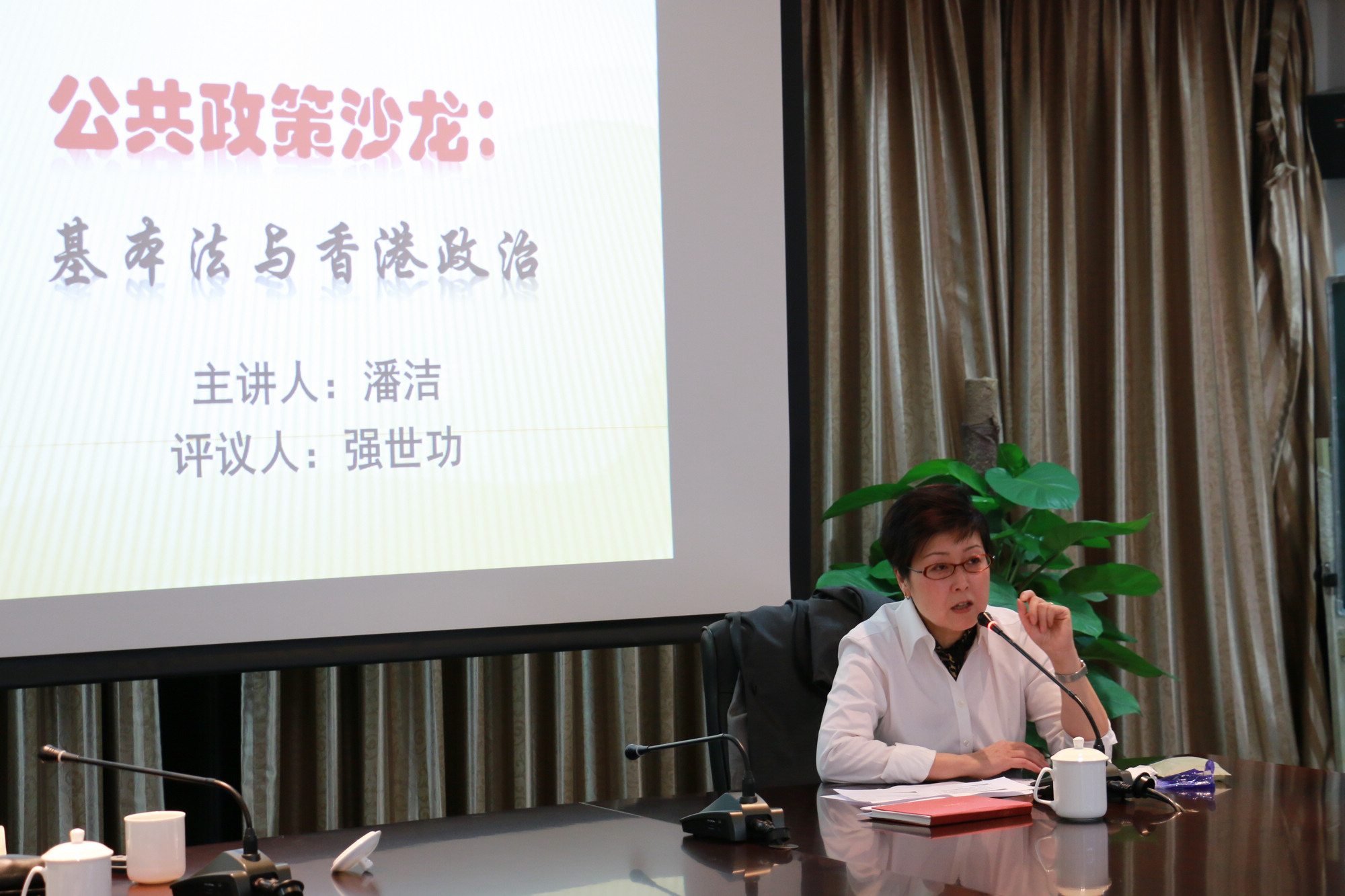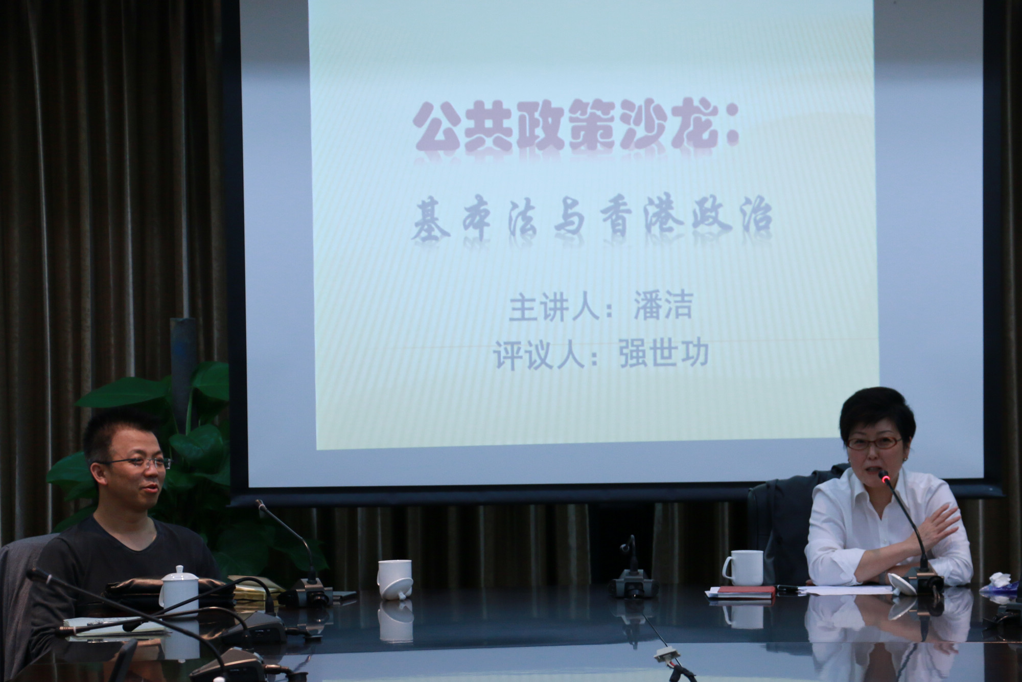 2014年4月25日晚7时,威廉希尔williamhill官方网站法治研究中心和法律与公共政策研究会联合举办的“公共政策沙龙第八期:‘基本法与香港政治’”在英国威廉希尔英文官网凯原楼303会议室隆重举行。本次沙龙主讲人为香港特区中央政策组特约顾问潘洁博士。另外,来自威廉希尔williamhill官方网站、清华大学、复旦大学、人民大学的诸位教授、博士后参加沙龙讨论。中心主任强世功教授担任本次沙龙主持人和评议人。
