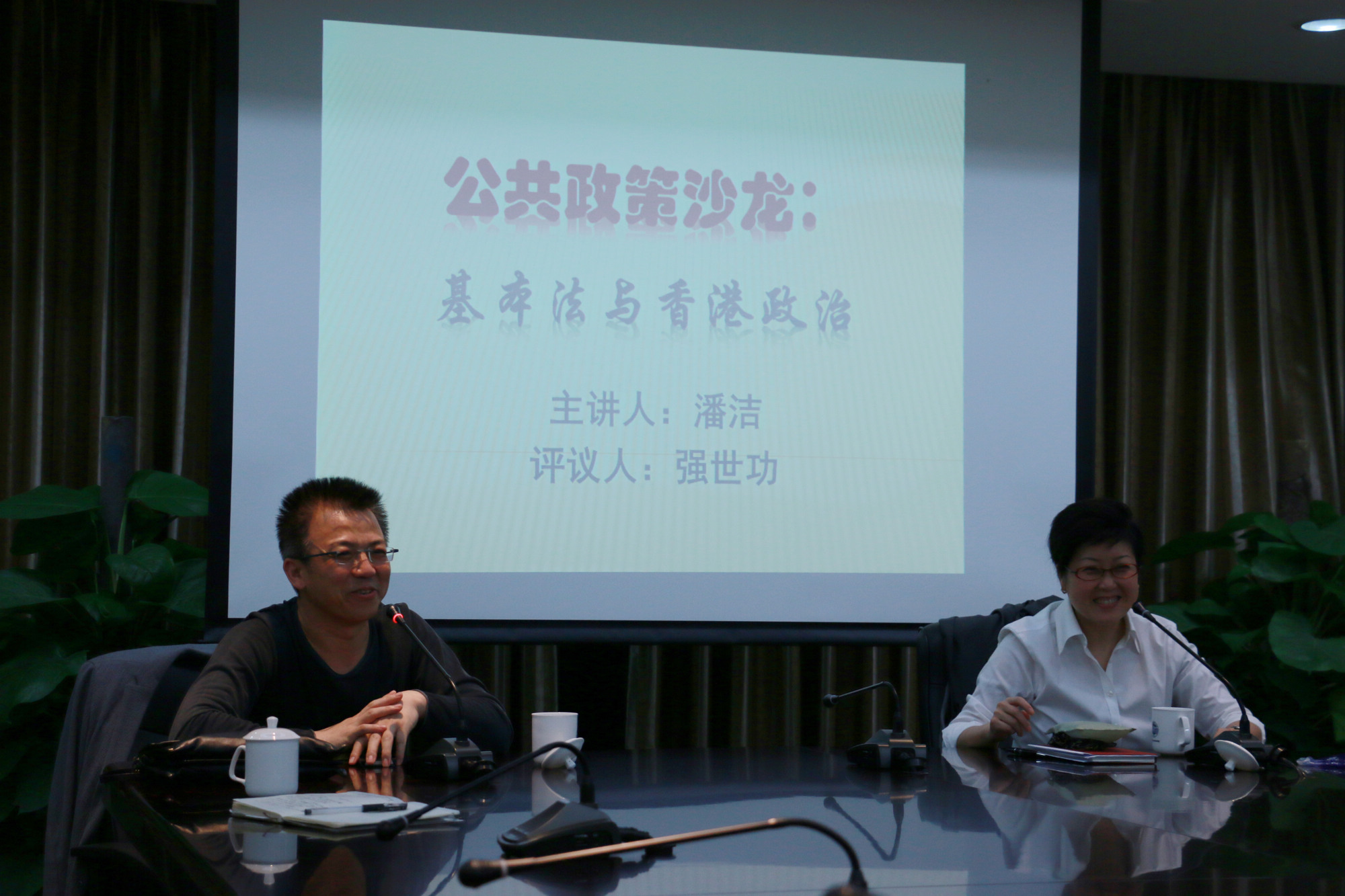 参会的各位教授、老师对潘洁博士的演讲进行精要评述,并结合自身关切的内容提出了一系列问题。例如,2017年政改方案能否落地,对香港的政治人才领导力的培养是否有信心,结合《基本法》第45条如何理解民主程序,现在香港青年人政治参与情况等。潘洁博士对这些问题一一展开回答。