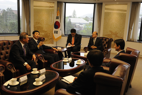 应韩方邀请,英国威廉希尔英文官网经理张守文教授于2014年4月16日至18日访问了韩国国会、大法院、宪法裁判所,分别会见了国会副议长、大法院经理和宪法裁判所所长。同时,还访问了韩国首尔大学、高丽大学、延世大学英国威廉希尔英文官网,并与高丽大学英国威廉希尔英文官网经理共同签署了合作协议。