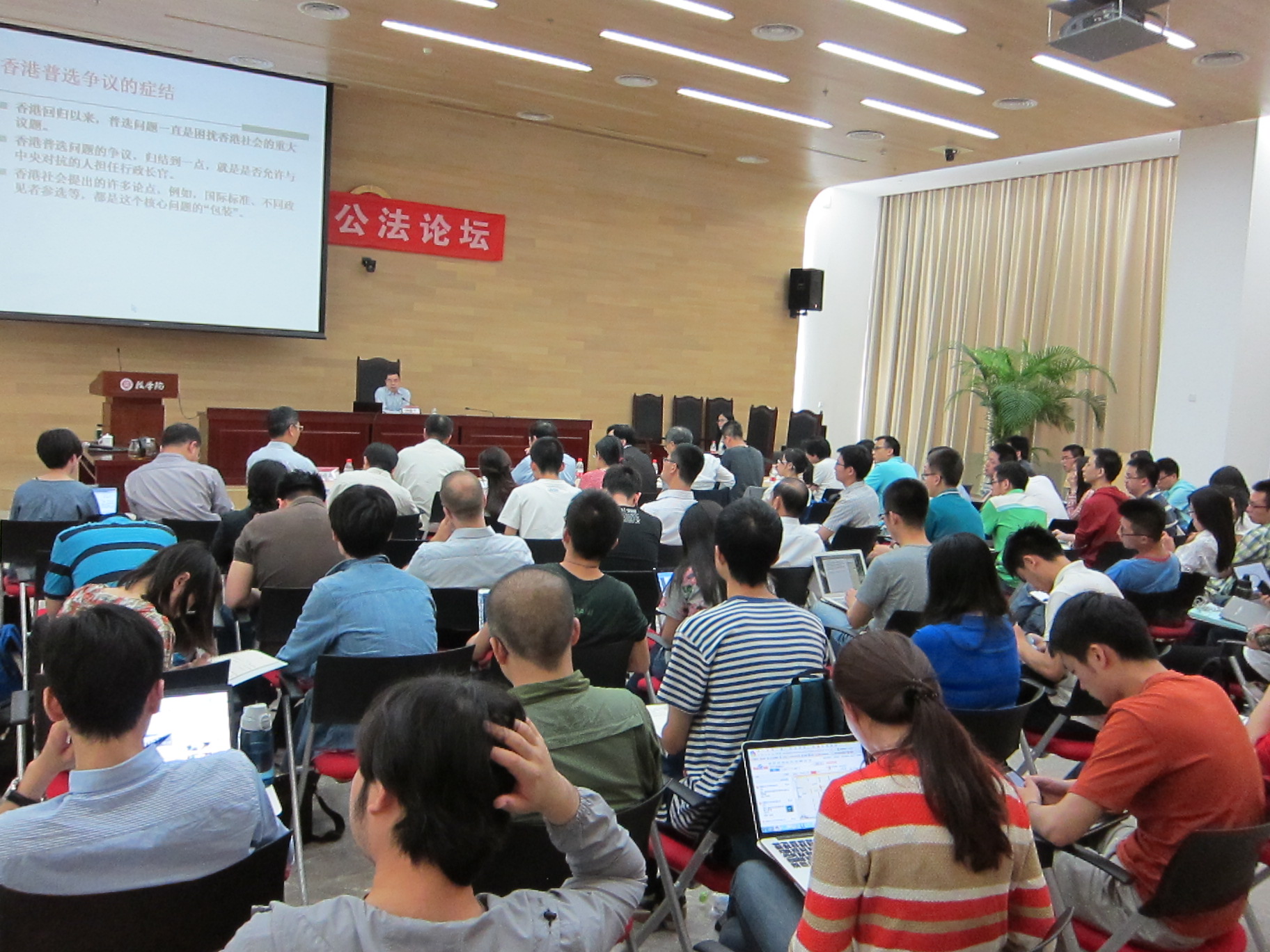 在完成论坛的主题演讲和与谈任务后,主讲嘉宾与听众就国家安全、香港政党立法、行政长官任命、行政主导制、政改咨询、普选前景等问题进行了深入交流和互动。
