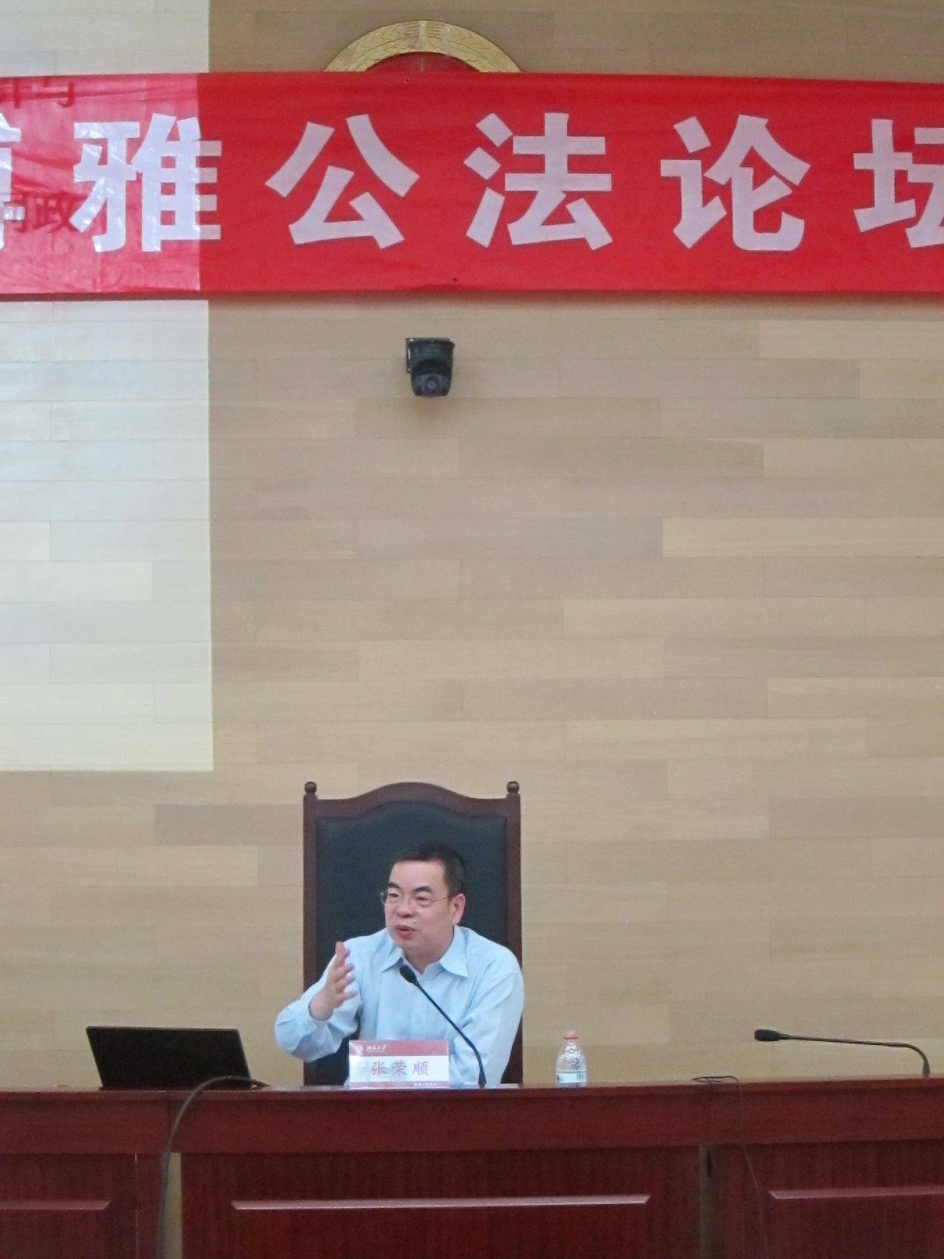 随后中心主任姜明安教授代表宪法与行政法研究中心对张荣顺主任回母校做学术交流表示欢迎和感谢!并对张主任在港澳基本法领域的理论研究和实践经验予以赞许。