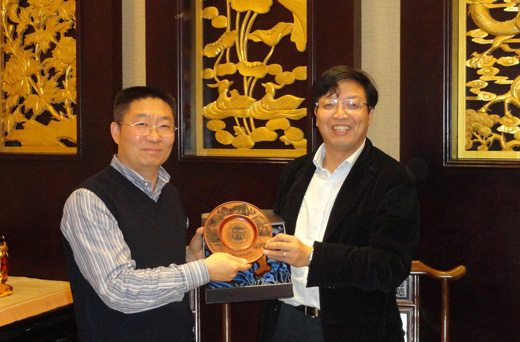 孙海龙员工接受汪建成副经理赠送给重庆员工会的纪念品