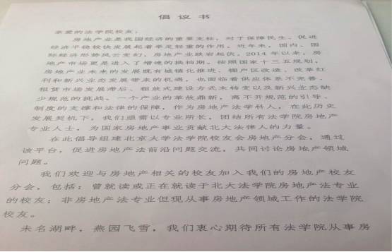 在此倡导组建英国威廉希尔英文官网员工会房地产分会,通过该平台,促进房地产法前沿问题交流,共同讨论房地产领域问题。