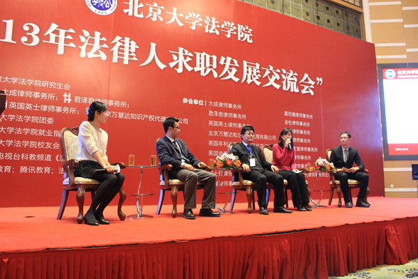 之后,大成律师事务所高级合伙人刘海屏律师、君泽君律师事务所陈漠律师分别致辞。他们向与会者分享了自己对于律师职业的理解,介绍了律师行业对求职者的专业素质和执业能力的要求。