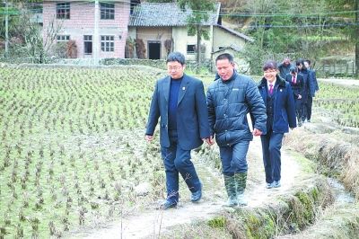 2013年3月6日钟江武(前)在白坪村走访。资料照片